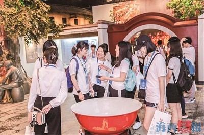 两岸学子在市博物馆,感受厦门的历史和闽台民俗文化。