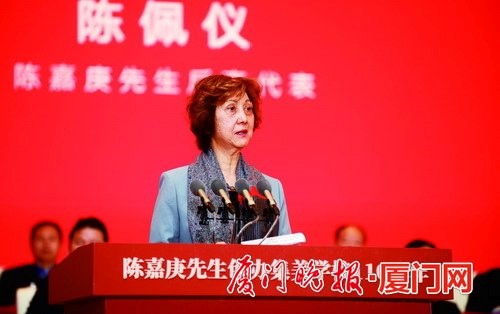 陈佩仪在纪念大会上致辞。 刘东华 摄