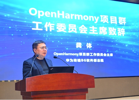 OpenHarmony项目群工作委员会主席、华为终端BG软件部总裁龚体作主题报告