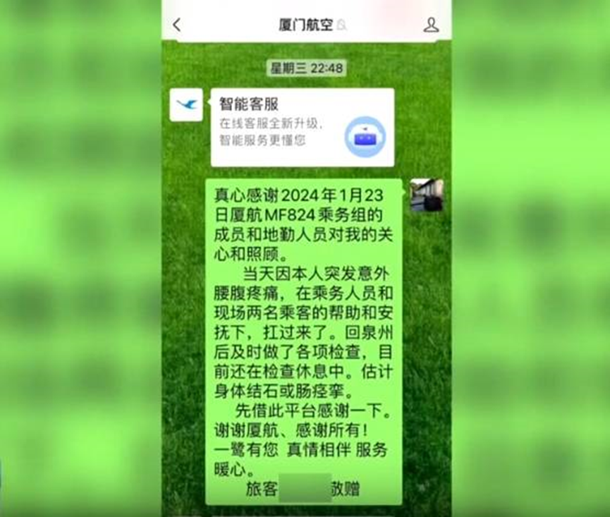 经过半个小时的“爱心救援”,患者逐渐恢复意识,缓解病痛。事后,患者向厦航机组乘务人员和中医理疗师表示感谢,并与厦大医学院取得联系,向龙娜沙表达谢意。