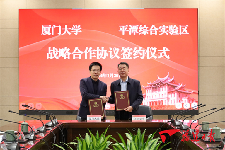 1月25日,平潭综合实验区党工委委员、管委会副主任何杰民带队前往厦门大学,双方就深化校地合作进行深入交流,并签订战略合作协议。