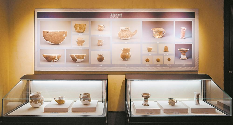 而在距今4000~3200年的东花丘、龟山遗址时期,先民们已经发展形成由仪式性区域、公共活动区域、个人生活区组成的大规模、高等级聚落。在龟山遗址,记者见到了由大型台基、器物坑(堆)和密集陶片组成的祭台遗址,从平坦的台面与散落一地的陶器碎片中,依稀可见当时的仪式盛景。