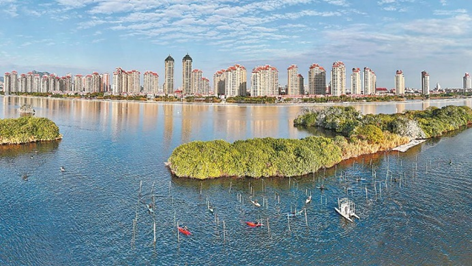 筼筜湖畔,水清岸绿,白鹭飞翔;五缘海湾,海天一色,千帆竞发;红树林边,绿意葱茏,晨晖斜照;健康步道,生态串联,绵延全岛。