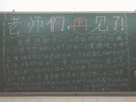 支教结束时,当地学生在黑板上给厦大支教老师留下的话。(受访者供图)