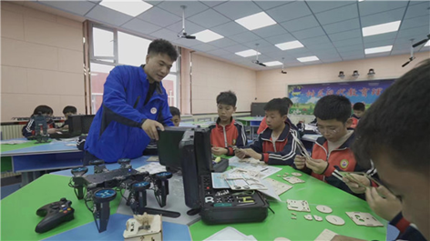 在关桥中学,周博语不仅教地理课,还利用自己所学的物理知识,给学生上机器人编程课。此外,他还和队友们到重点帮扶学生家里家访,了解孩子们的家庭情况,及时给予帮助。他们的家访足迹遍布海原县各个乡镇,身上的队服也成了助学路上最美的一道蓝。