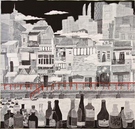 这幅作品画的是沙坡尾渔港现在的面貌,但这并不是高秀的首选题材。她本要画徽派建筑,画了十几稿,都觉得情感不够。方广智强调艺术创作必须是亲身经历的,自己感受后再朴素表达,一定能打动人。高秀决定画沙坡尾后,不仅仔细观察那里的老建筑,还找了酒吧采风。