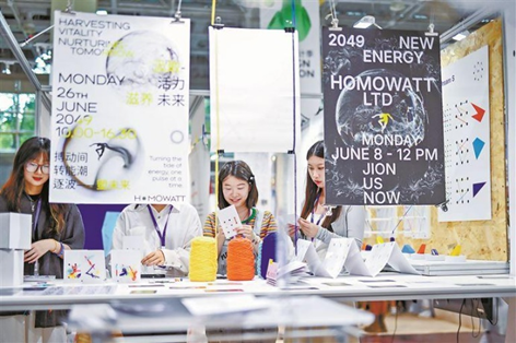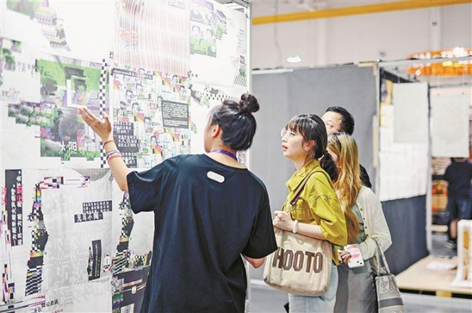 在毕业展现场,一个个展位犹如一间间工作室,观众可以看到学生从概念、调研、草稿到成品的每个步骤。“策展时,我们的总体思路是从材料到设计,所要呈现的是学生在设计过程中的‘进行时’,而不是‘完成时’。”创意与创新学院教师、策展总监之一陈伟说。