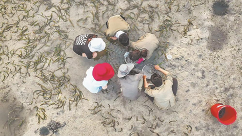 厦门大学BLUE-CARE项目组在野外开展海草床蓝碳监测工作。