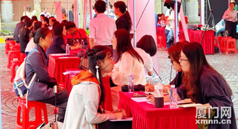 6月6日,厦门市2024年“千校万岗·筑梦基层”厦门大学学生就业实习暨影视专场招聘会在厦门大学思明校区三家村学生广场举办。招聘会由校地、校企、校院联动举办,并设计影视专题招聘,吸引了40余家用人单位参与,其中影视文化用人单位近20家。
