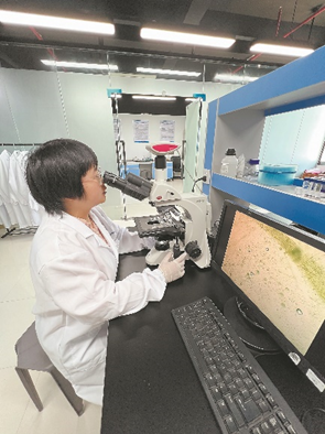 海水养殖生物育种全国重点实验室科研人员在检测大黄鱼种苗的生长、健康状况。本报记者 李珂 摄