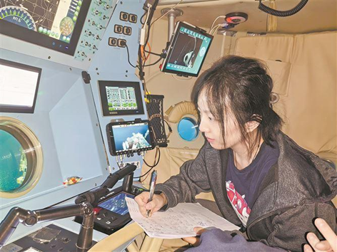 潜水器下降时,舱内温度也慢慢下降。“驾驶舱里,温度、湿度都被严格控制,我没有感到不适,就是温度降低后,加了一件外套。”身材娇小的孟雅冰说,虽然驾驶舱的空间不大,但她能够站立,还能随时变换坐姿。