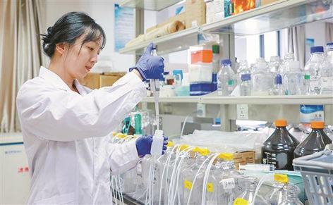孟雅冰在实验室内研究海水样本。(本报记者 张奇辉 摄)
