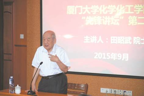 2015年,田昭武为化学化工学院新生作报告。(厦门大学供图)