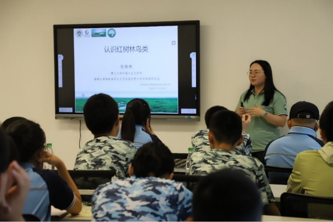 “老师,红树林为什么不会被海水冲走呢?”实践队员们以寓教于乐的方式,巧妙融合视频展示、图文解说及亲手操作的趣味实验,为来自厦门槟郎中学、长沙市岳麓区第一小学等学校的中小学生们精心打造了一场关于红树林生态系统的知识盛宴,播撒生态文明的绿色种子。