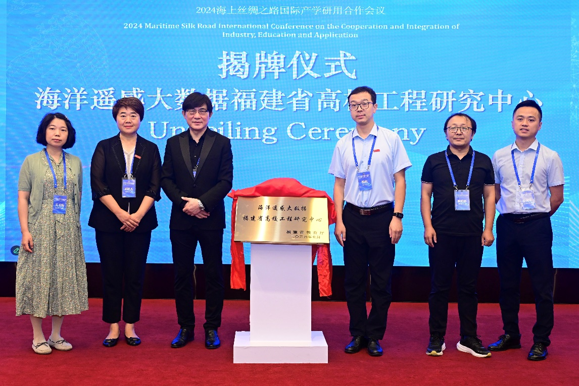 在成果展示环节,大会以视频的形式展示了海上丝绸之路国际产学研用合作会议自2021年举办以来取得的丰硕成果。开幕式上还进行了海洋遥感大数据福建省高校工程研究中心揭牌仪式。