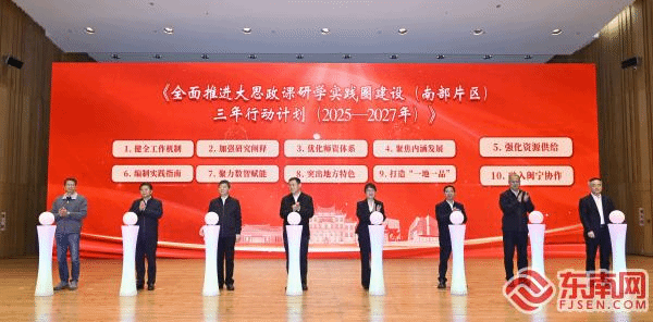会上,《全面推进“行见八闽”大思政课研学实践圈建设(南部片区)三年行动计划(2025—2027年)》发布,该行动计划由厦门大学协同南部片区各成员单位共同制定,以更好地贯彻落实福建省委宣传部、省委教育工委有关部署要求,全面推进“行见八闽”大思政课研学实践圈建设,加快构建区域特色、福建风格的“大思政”实践育人体系。