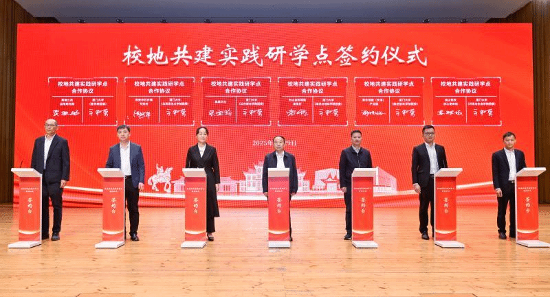 在校地共建实践研学点签约仪式上,厦门大学党委常委、宣传部/教师工作部部长高和荣代表厦门大学12个二级学院与南部片区12个研学点签署共建协议。研学实践圈建设工作启动以来,厦门大学会同各协同单位致力于实践研学点的内涵式建设,探索研学点建设长效机制,本着学科相近、需求匹配、双向选择的原则,推动各实践研学点与厦门大学各学院开展“一对一”结对共建,助力“行走的思政课”行稳致远。