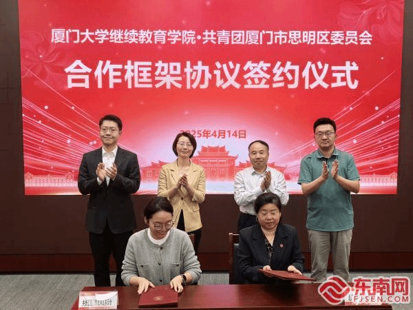 4月14日,厦门大学继续教育学院与共青团厦门市思明区委员会合作框架协议签约仪式暨“思明星光夜校——厦门大学2025年春季夜校研习班”开班式在厦门大学举行。双方围绕加强青年教育培训、携手搭建产学研合作平台、打造青年人才交流平台和建立青年社会实践共联机制等方面展开深度交流达成合作意向。