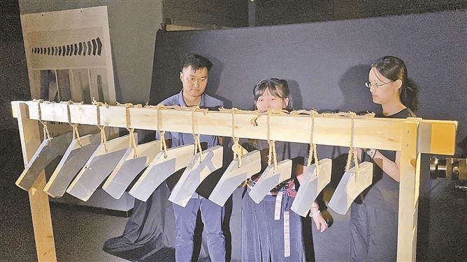 厦大张闻捷教授团队对武王墩一号墓出土的编磬(一种古代打击乐器)测音。(本组图/受访者 提供)