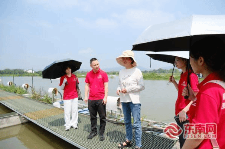 走进埭溪镇,实践队看到昔日尘土飞扬的矿区已华丽转身为“美妆小镇”,这里通过统一规划治污设施,吸引珀莱雅等300余家美妆企业落户,形成了“美丽经济”产业集群。在鹿山坞建材公司,阶梯式复绿的矿山宛如巨大的“绿色钢琴键”,而通元石料公司的数字管控平台正实时监测着废水循环系统的运行数据。南浔荻港村的桑基鱼塘系统让队员们大开眼界:2500年前古人创造的桑基养鱼生态循环至今仍在焕发生机。盛江家庭农场里,改良版的“跑道养鱼”技术让鱼儿在循环水槽中“健身”,实现养殖零排放。在德清洛舍水情馆,水利工程模型与生态湿地相映成趣,让队员们深刻体会到湖州的水利工程建设与水源涵养、生物多样性保护融为一体,处处体现着人与水和谐共生的生态智慧。
