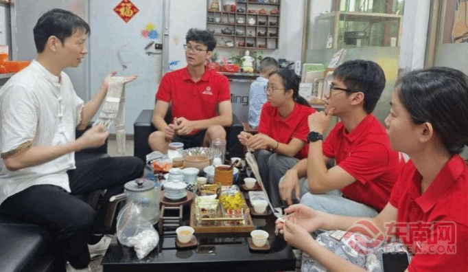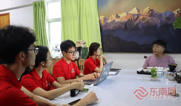“经纬千年”实践队与丰泽区文化馆副馆长许哲宗座谈(尤奕林 摄)