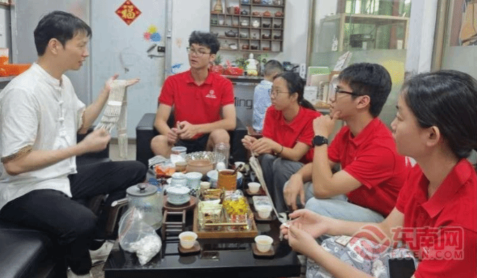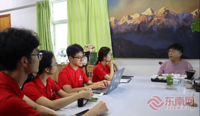 “经纬千年”实践队与丰泽区文化馆副馆长许哲宗座谈(尤奕林 摄)