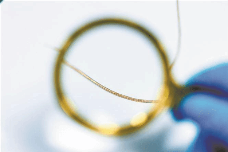 放大镜视野下的“神经蠕虫”电极。(受访者 供图)