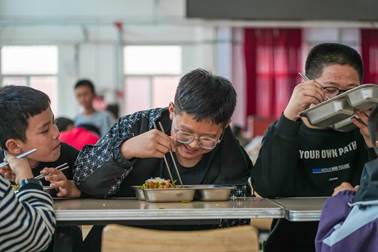 海原县关桥中学的大部分学生是住校生。放学后,学生们在学生食堂用餐