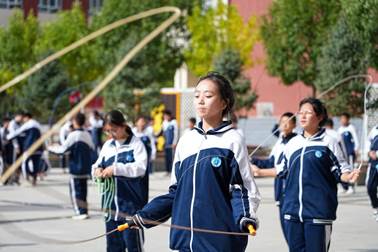 海原县第五中学大课间,学生们正在进行跳绳活动
