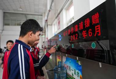 一口热水,承载着两千多公里外的漳浦情谊。关桥中学的学生们每天都从这台标记着“闽宁协作漳浦援赠”的饮水机上接水