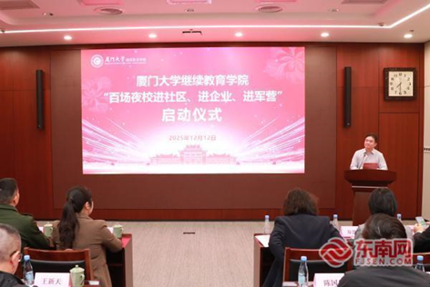 为进一步推动校地、校企、军校协同,拓展继续教育服务社会新路径,构建资源共享、人才共育、发展共促新格局,12月12日,厦门大学继续教育学院“百场夜校进社区、进企业、进军营”启动仪式在厦门大学举行。