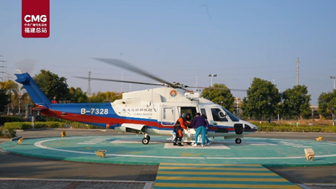 15时41分,“B-7328”救助直升机降落在厦门大学附属翔安医院,将伤员交由医护人员紧急救治。目前,该渔民正在医院接受治疗。