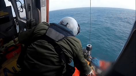 受冷空气影响,事发海域浪高5米伴有8级大风。直升机机组克服船舶纵摇幅度大、吊运点空间狭小、甲板障碍物较多等困难,利用短暂的船舶摇摆相对稳定期,迅速放下救生员。
