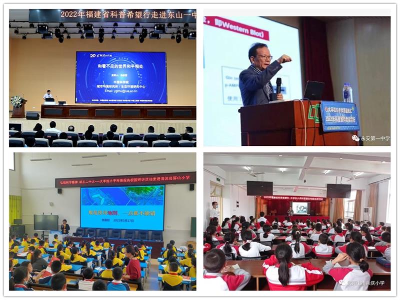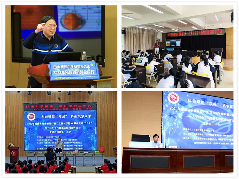 5月16日至20日,2022年福建省“科普报告希望行”暨“弘扬科学精神 献礼党的二十大——中国科协大手拉小手科普报告汇”活动在我省各地开展。由中国科学院谢华安院士、朱永官院士、林圣彩院士及闽江科学传播学者、高校教授、科研院所高级工程师等近20名院士专家组成的科技志愿服务团,走进福州、漳州、三明、南平、宁德等5个设区市18个县(市、区)88所学校开展近90场科普报告。活动行程达2095公里,惠及全省2.2万名中小学生,其中农村学生约占45%。