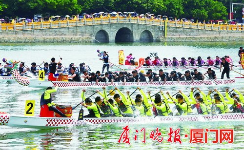 “我们的队员中有一半来自台湾,大家在一起划龙舟需要同心协力。”聚融·两岸职工龙舟队队员段湘麟来自台湾。“我们是真正的同舟共济,比赛过程中结下了深厚的友谊。本来是朋友的,现在是兄弟、是家人了。”他说,到厦门来已有11年了,这是在厦门过的第四个端午节。