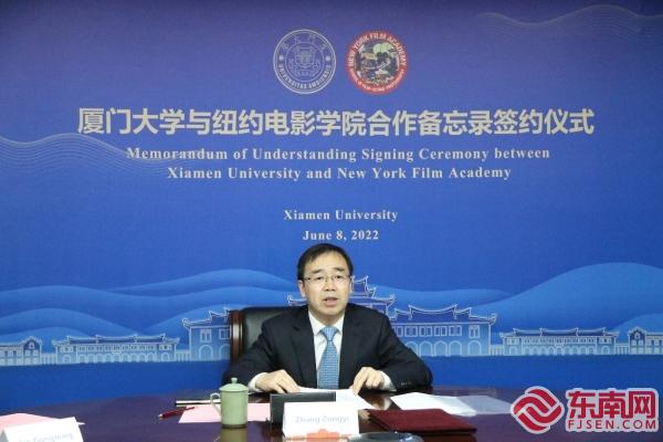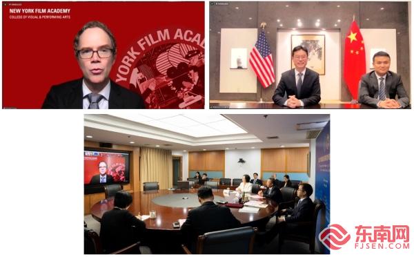 厦大与美国纽约电影学院合作备忘录签约仪式以线上线下相结合的方式举行(厦大供图)