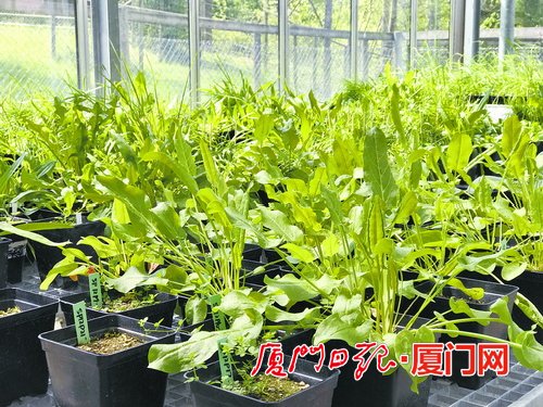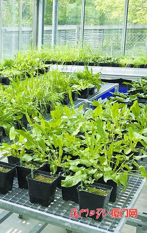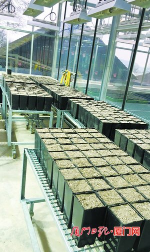 ▲植物种子被栽培在温室中的约1000个花盆里。