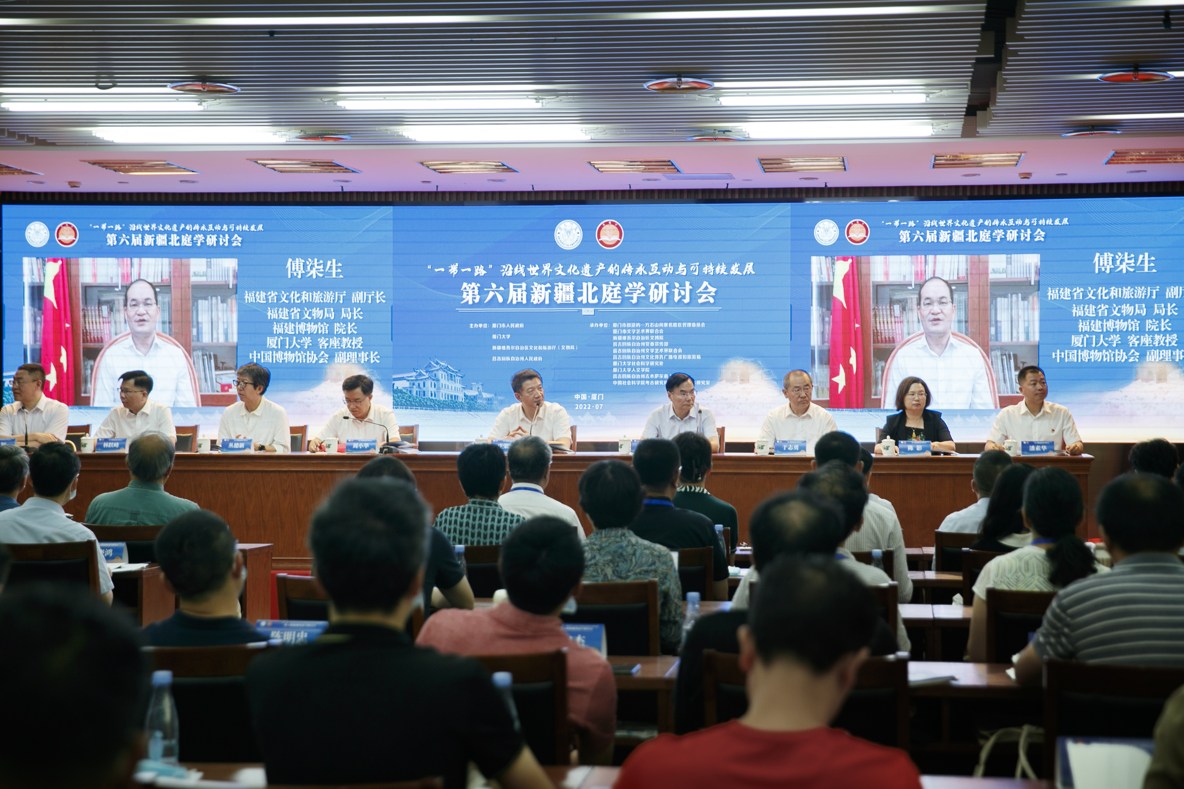 国家文物局考古司司长闫亚林,中国社会科学院考古研究所副所长朱岩石,福建省文化和旅游厅副厅长、省文物局局长傅柒生,新疆昌吉回族自治州人民政府副州长周小华,厦门市人民政府副市长庄荣良,厦门大学校副校长杨斌通过线上线下等方式出席开幕式并致辞。