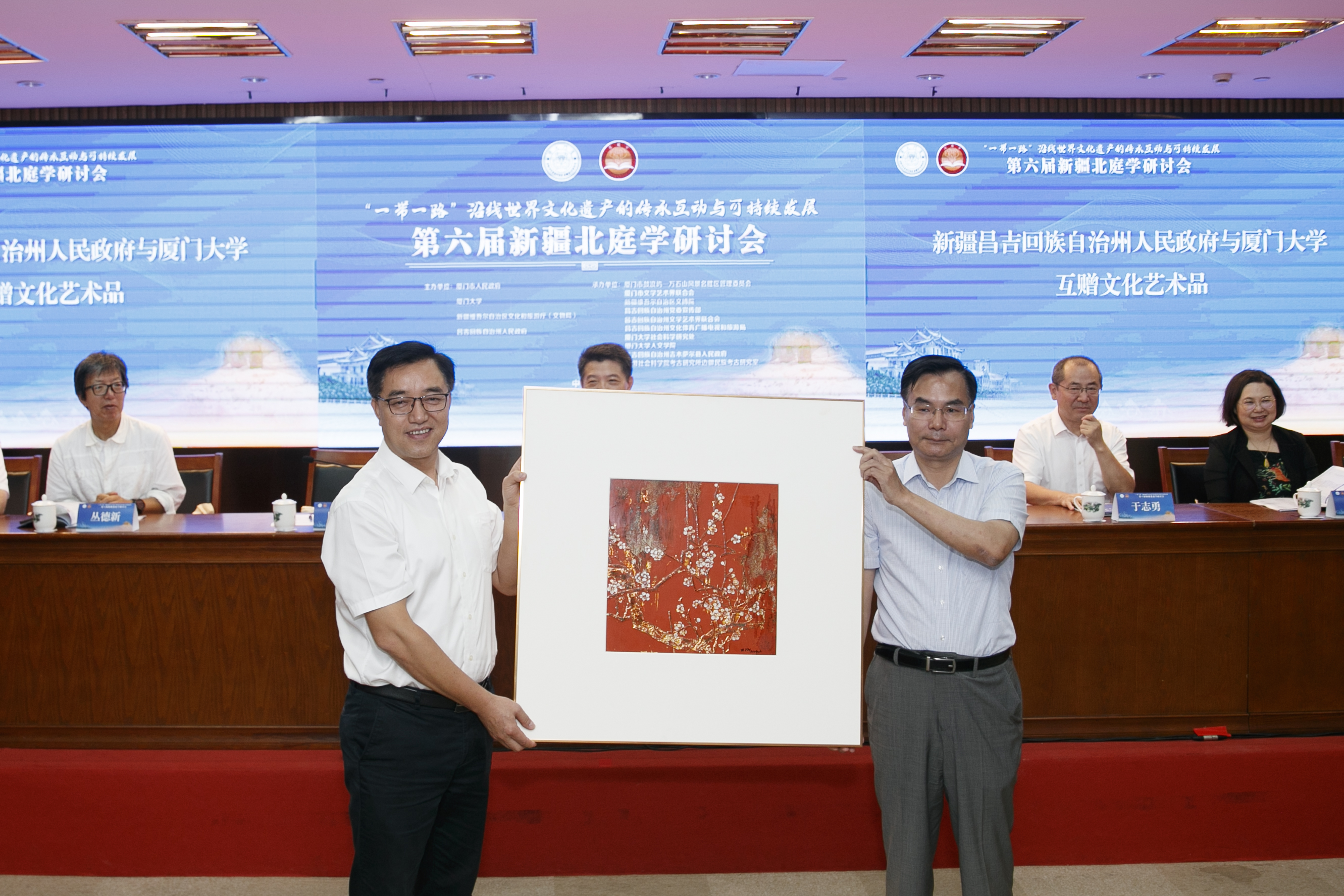 新疆昌吉回族自治州 人民政府领导向厦门市 人民政府、厦门大学赠 送昌吉州文化艺术品