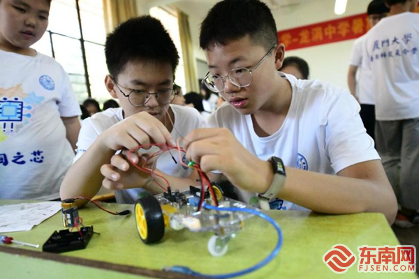 龙海一中营员吴立娴说:“小车的制作过程艰难但有趣,我学会了操控智能车,懂得了代码、编程的神奇,真切地感受到科技的有趣。”