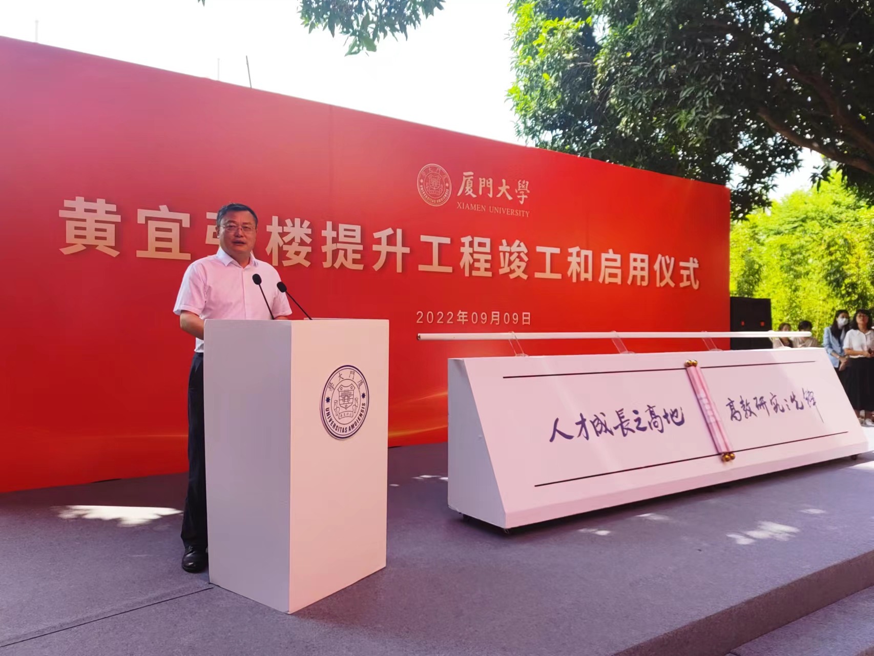 厦门大学党委书记张荣致辞时表示,黄克立先生是厦门大学的杰出校友,一生心系祖国发展和统一事业,为香港的顺利回归和繁荣稳定作出了积极贡献。他十分、牵挂母校的发展,学校思明校区克立楼就是由其捐建。黄宜弘博士传承父辈爱国兴教的高尚情怀,把赤诚爱国之心、期盼强国之情转化为支持教育的实际行动。“黄老学长两代人的爱心捐赠,是对‘嘉庚精神’的具体践行与实际弘扬,今天,借黄宜弘楼启用之机,希望同学们弘扬这种崇高精神,胸怀‘国之大者’,厚植家国情怀,肩负新时代赋予的使命担当。”张荣如是说。