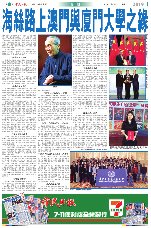 有着悠久爱国爱澳历史传统的澳门,与有着深厚家国情怀和红色基因传承的厦门大学,在爱国奋进的悠扬旋律中,已携手走过数十个春秋。围绕国家“一带一路”倡议,厦门大学与澳门在人才培养、学科建设、科学研究等领域有更大的互补和合作空间。未来的悠悠岁月里,在东南海的碧浪清波中,厦门大学将与濠江儿女一起挥洒热血,继续携手同行,共谱发展新篇。