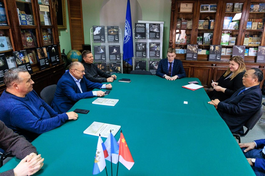 这位中国学者深入了解阿穆尔州研究会的历史沿革与当代发展。令他惊叹的是,其就座的会议桌正是文豪契诃夫曾使用过的文物。他饶有兴致地聆听了关于俄罗斯地理学会逾百年历史及符拉迪沃斯托克城市发展的介绍,并对图们江(又称图曼江)研究表现出特别关注。