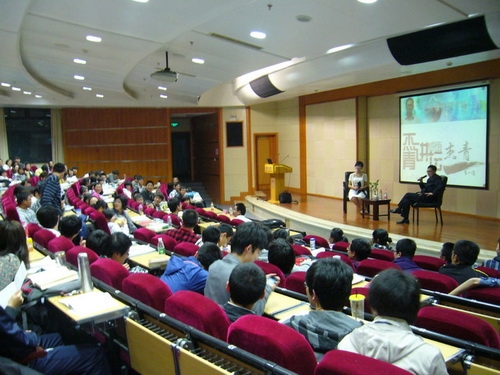 在王教授精彩而幽默的讲座后,讲坛以访谈的形式继续进行。王教授与大家分享了他的大学生活点滴,以及他对出国留学、双学位、专业前景等问题的独特看法。特别就化学专业的大学生应如何学好本专业知识,他提出了很多宝贵的意见与建议。而在之后的现场互动环节中,王教授更是以睿智而不失风趣的回答一一解决了同学们的问题,赢得现场阵阵掌声。