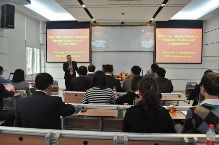 12月21日,厦门大学2011现代统计学与计量经济学国际研讨会在经济楼D110举行。本次研讨会由王亚南经济研究院(WISE)、经济学院、计量经济学教育部重点实验室(厦门大学)及福建省统计科学重点实验室(厦门大学)联合举办。