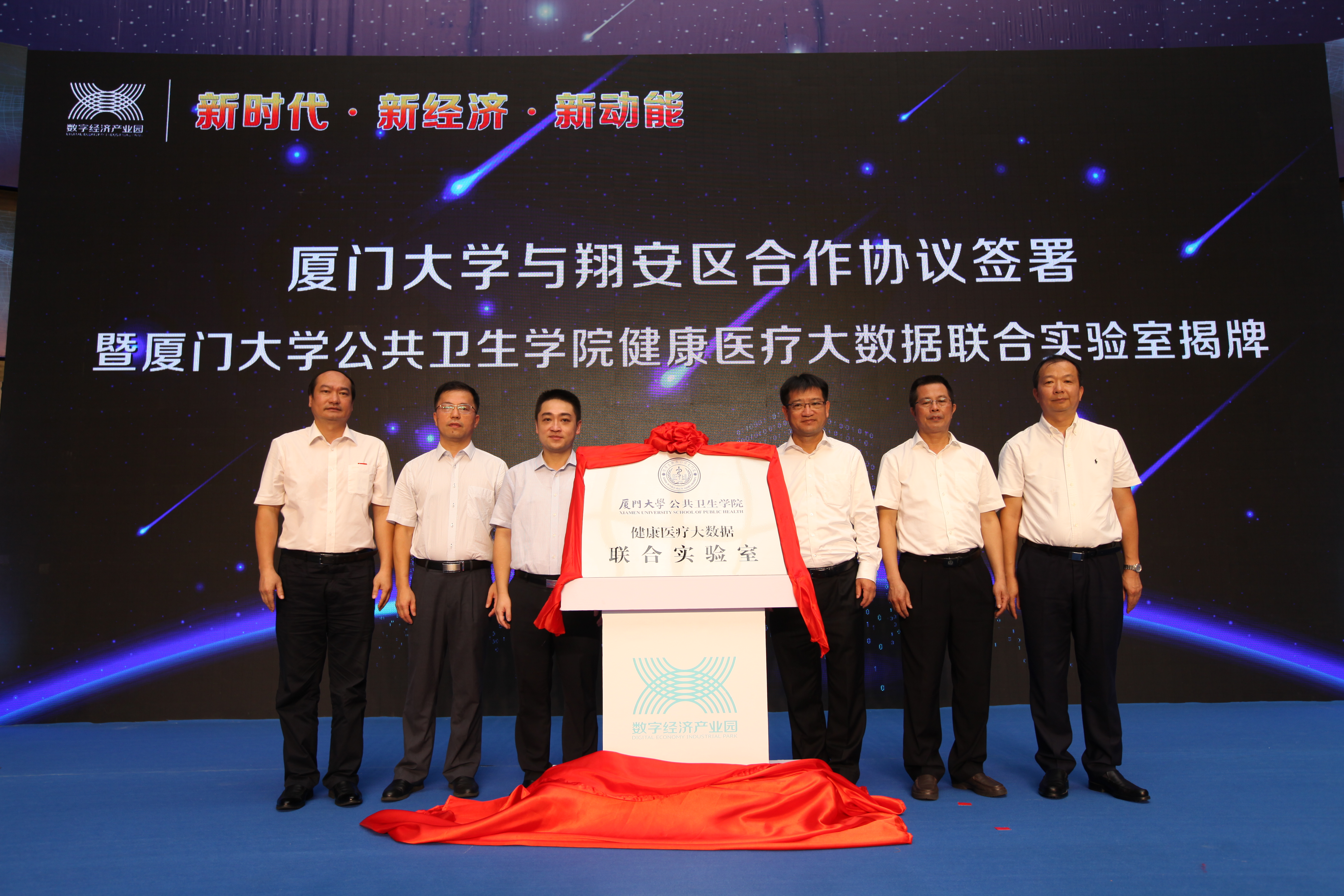 9月3日上午,数字经济产业园启用暨“健康翔安智谷”项目签约仪式在翔安举行。副校长江云宝,校长助理、翔安校区党工委书记、管委会主任陈光出席仪式,见证公共卫生学院与翔安区政府签署《共同建设“健康翔安”合作框架协议》,共同为健康医疗大数据联合实验室揭牌。