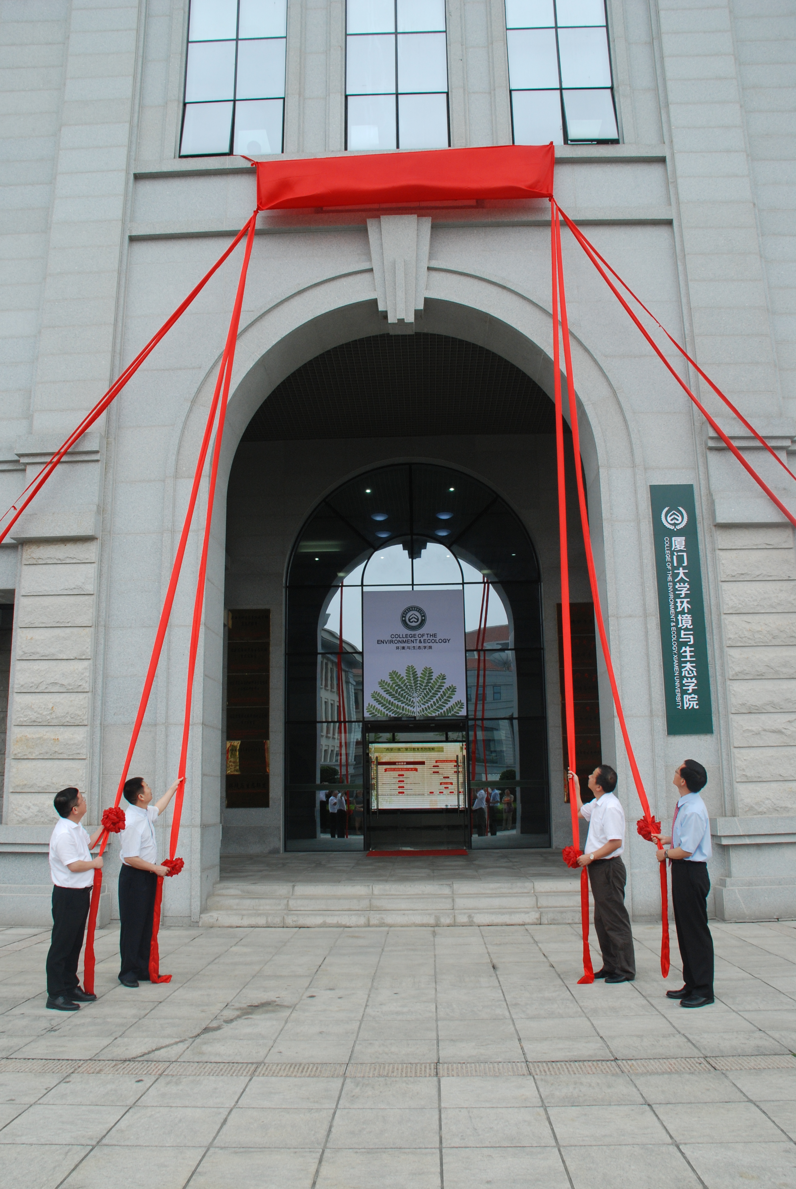 随后举行了环境与生态学院大楼命名揭牌仪式。厦门大学校长助理陈光、郑金泉董事长、李庆顺院长、沈小平书记共同为学院大楼命名进行揭牌,环境与生态学院大楼正式命名为“金泉楼”。