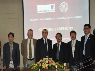 11月12日,英国利兹大学(the University of Leeds)校长Michael Arthur教授一行四人专程访问我校,与我校正式签署校际交流协议。副校长邬大光会见来宾,国际处处长毛通文、能源研究院院长李宁等会见时在座。