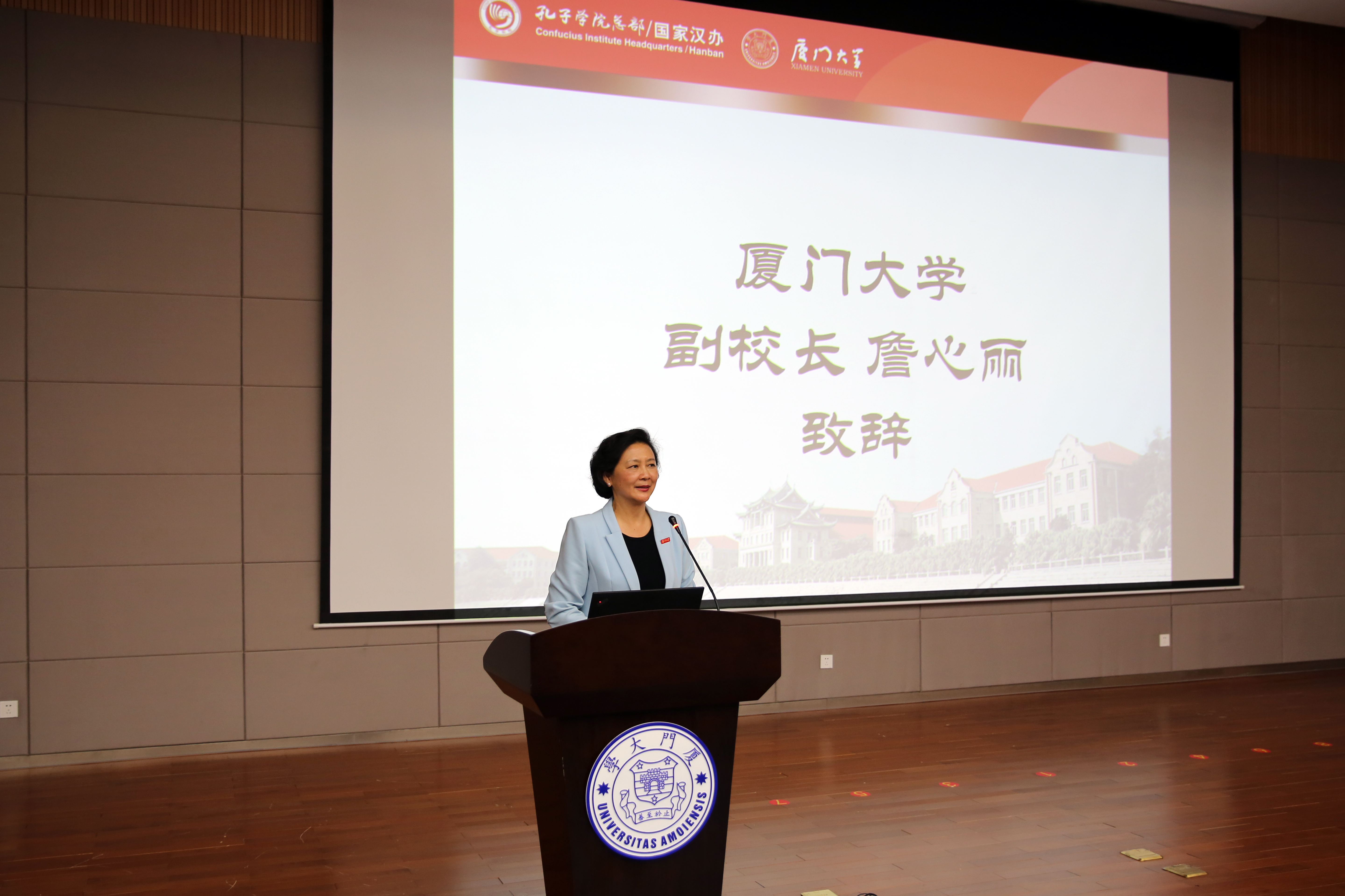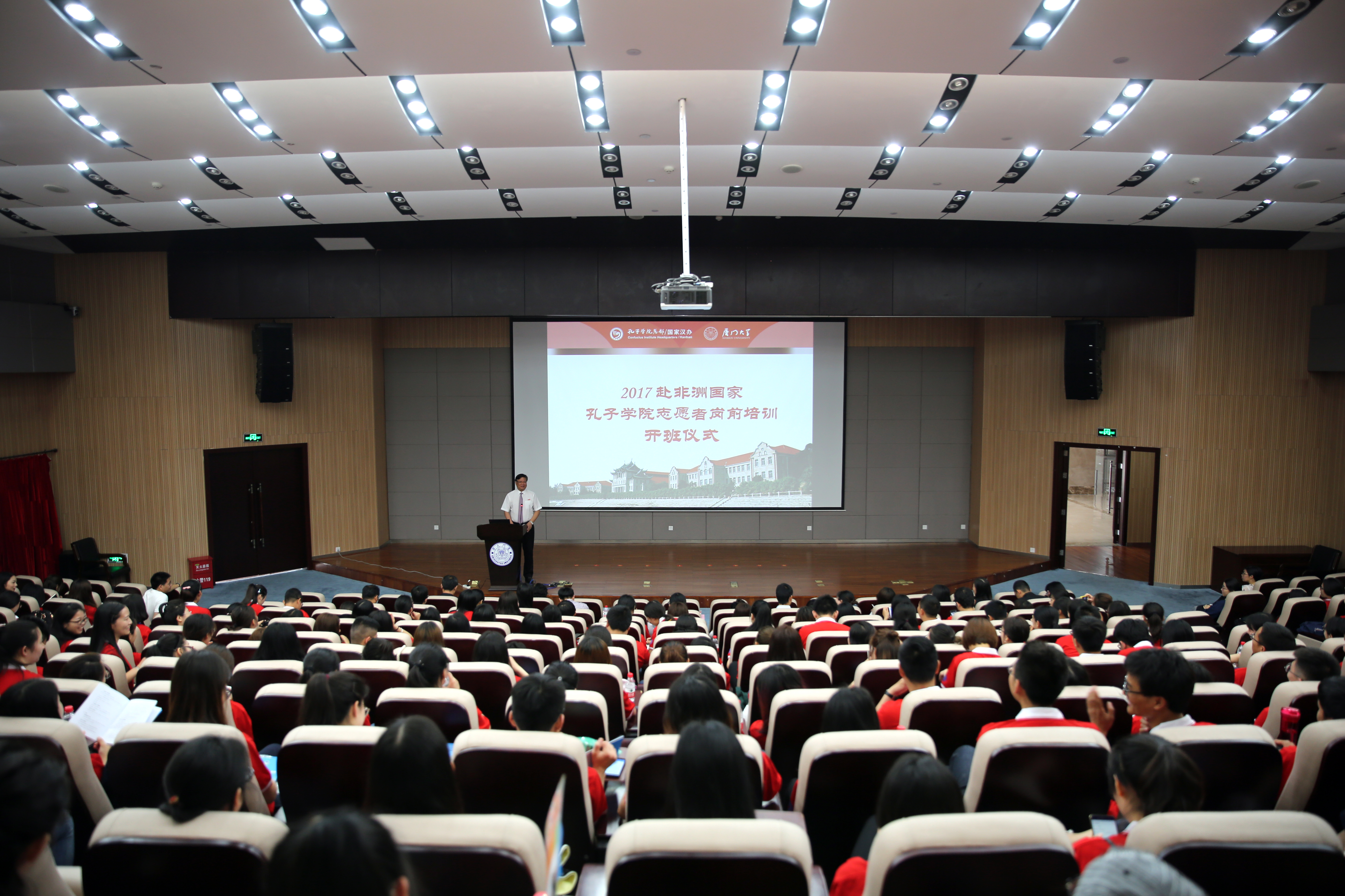 5月8日上午,2017年孔子学院总部/国家汉办赴非洲国家汉语教师孔子学院志愿者岗前培训开班仪式在翔安校区德旺图书馆报告厅正式举行,副校长詹心丽、汉语国际推广南方基地/孔子学院办公室党总支书记范丽、副主任耿虎出席本次会议并致辞,汉语国际推广南方基地/孔子学院办公室主任毛通文主持开营仪式。汉语国际推广南方基地教职工及204名培训学员参加了本次开营仪式。