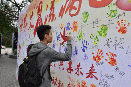赖虹凯等领导到活动现场后,纷纷在防艾签名墙上签名,以表达对该项公益活动的支持。赖虹凯指出,高校应营造预防艾滋病的良好宣传氛围,积极宣传防艾知识,让更多的人了解艾滋病防护知识,号召大家行动起来,向“零”艾滋迈进;此外,还应从政策和技术两个层面来开展工作,从不同的维度加强防艾宣传工作,切实增强青年学生养成健康生活方式的意识。